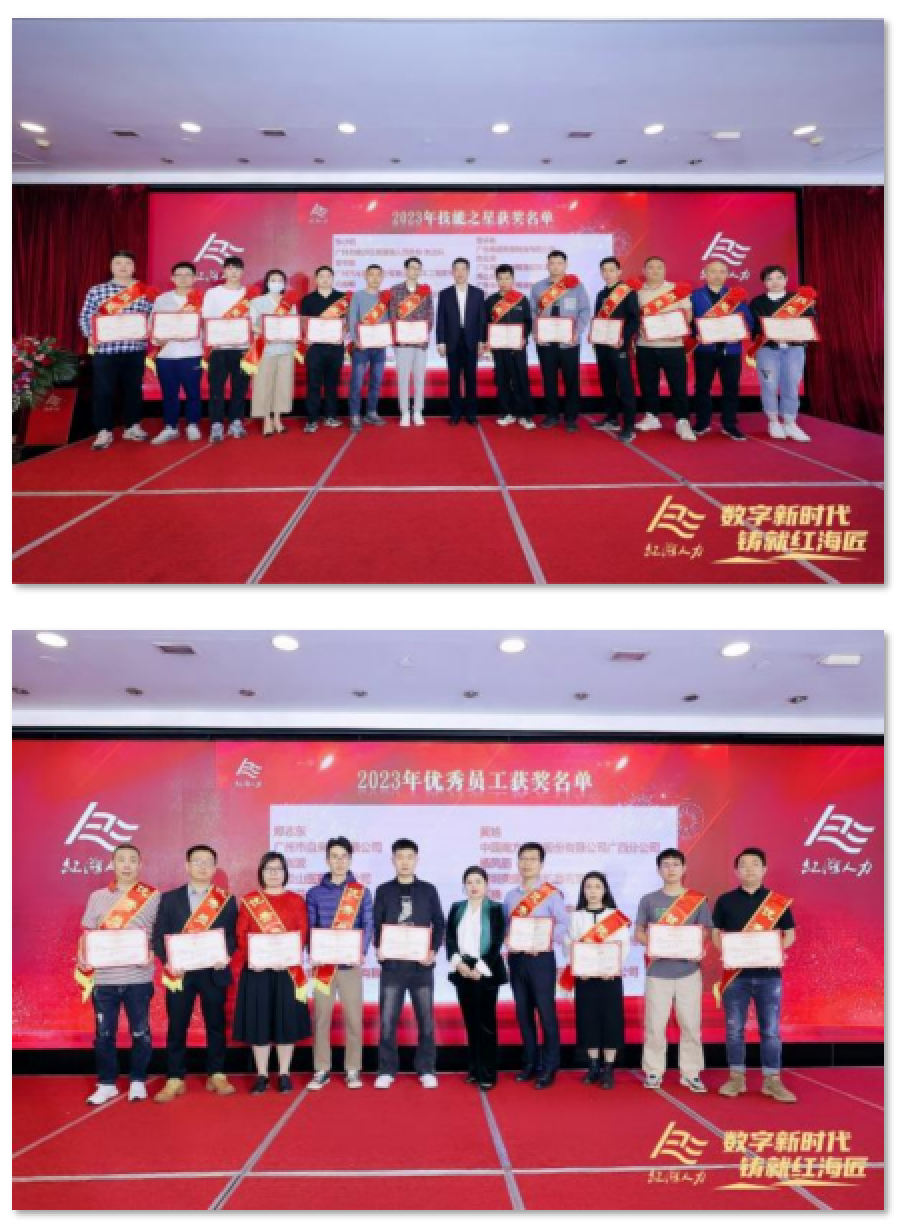 為樹(shù)典型,立榜樣,學(xué)先進(jìn),紅海人力集團(tuán)于2023年11月28日隆重舉行“數(shù)字新時(shí)代,鑄就紅海匠”2022-2023年度紅海人力集團(tuán)技能之星和優(yōu)秀員工表彰大會(huì)。廣東省總工會(huì)、廣東省財(cái)貿(mào)工會(huì)、廣州市總工會(huì)、廣州市人社局、珠光街辦事處等領(lǐng)導(dǎo)蒞臨指導(dǎo),集團(tuán)熊穎董事長(zhǎng)、李嬪副總裁、楊艷副總裁等領(lǐng)導(dǎo)及員工近200人參加線下表彰大會(huì),線上面向全集團(tuán)7000多家客戶單位和30萬(wàn)員工直播現(xiàn)場(chǎng)。
