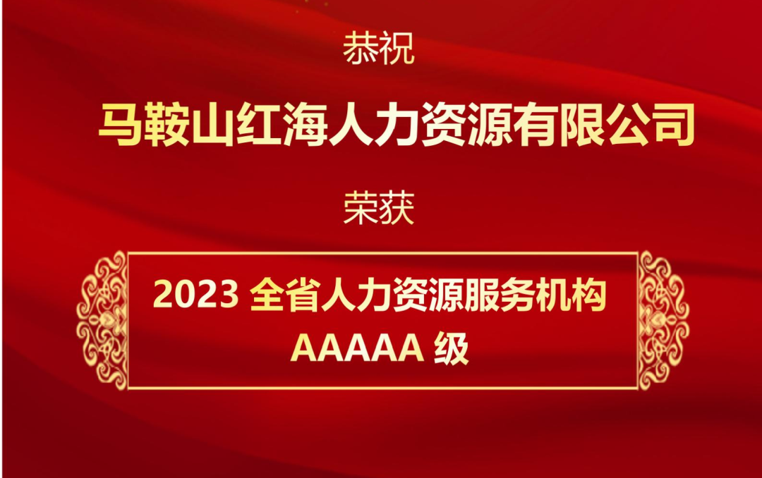 根據(jù)安徽省人力資源和社會保障廳《2023年全省人力資源服務(wù)機構(gòu)AAAAA等級評定結(jié)果公示》,馬鞍山紅海人力資源有限公司榮獲AAAAA級人力資源機構(gòu)認定。