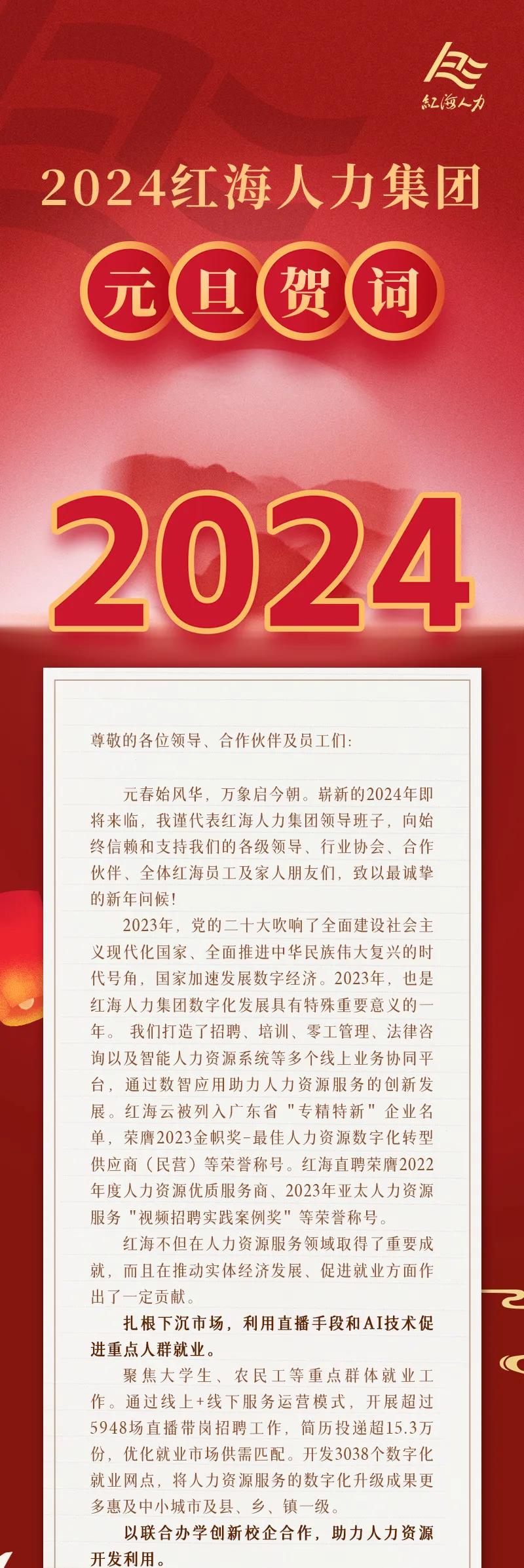 奮楫揚帆 逐夢前行——2024紅海人力元旦賀詞