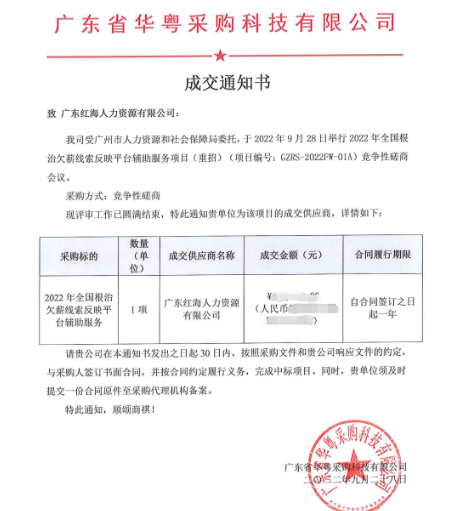 人事事務(wù)中標(biāo)廣州人社全國根治欠薪線索反映平臺(tái)輔助服務(wù)項(xiàng)目