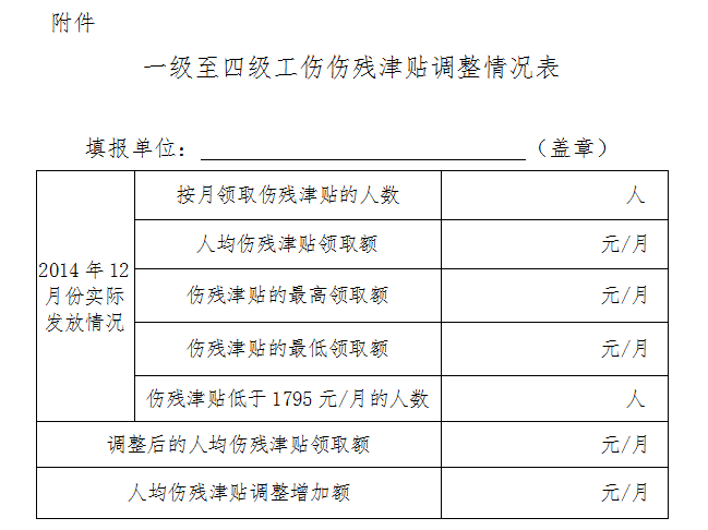 附件:一級至四級工傷傷殘津貼調(diào)整情況表