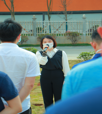 (圖4 湖南紅??偙O(jiān)李紅代表強調(diào)用工安全) (圖5 為員工配備統(tǒng)一生活用品,前往格力宿舍)
