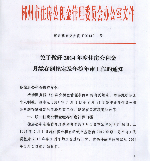 2014年度郴州市住房公積金月繳存額核定及年檢年審工作的通知