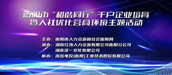 為全力推進(jìn)衡陽(yáng)市勞動(dòng)關(guān)系“和諧同行”能力提升三年行動(dòng)計(jì)劃,助力紓困解難,助力企業(yè)發(fā)展,由衡陽(yáng)市人力資源和社會(huì)保障局主辦,湖南紅海人力資源有限公司衡陽(yáng)分公司(以下簡(jiǎn)稱衡陽(yáng)紅海)承辦的衡陽(yáng)市“和諧同行”千戶企業(yè)培育暨人社優(yōu)化營(yíng)商環(huán)境主題活動(dòng)啟動(dòng)儀式,于6月1日上午在南岳電控(衡陽(yáng))工業(yè)技術(shù)股份有限公司成功舉辦。
