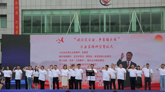 “涵養(yǎng)愛(ài)國(guó)情懷,堅(jiān)定聽(tīng)黨話、跟黨走,做愛(ài)國(guó)敬業(yè)的典范……”湖南紅海人力資源有限公司衡陽(yáng)分公司總經(jīng)理曹哲同志受邀作為衡陽(yáng)優(yōu)秀企業(yè)家上臺(tái)宣誓。企業(yè)有擔(dān)當(dāng),民族有希望,一句句鏗鏘的誓言展現(xiàn)出企業(yè)家們的責(zé)任和力量!