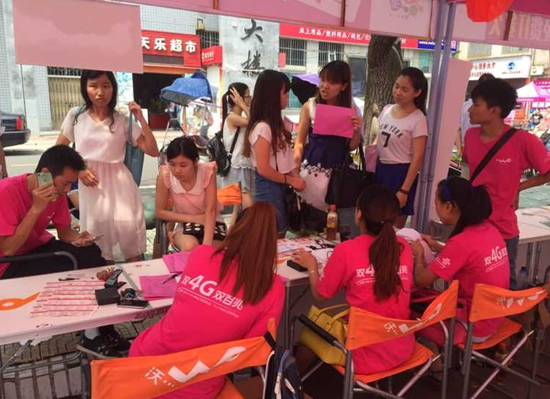 (聯(lián)通員工和學生辦理業(yè)務溝通中)
