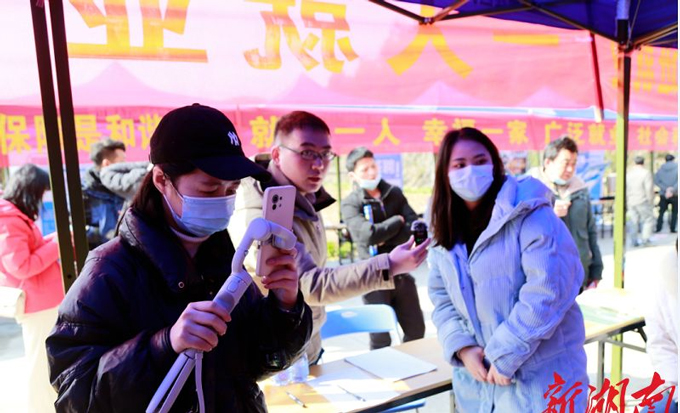 招聘會(huì)現(xiàn)場(chǎng),岳陽(yáng)紅海直聘線上招聘活動(dòng)同步舉行,線上與求職者積極參與互動(dòng),求職者亦可進(jìn)入直播間后,按照要求投遞個(gè)人簡(jiǎn)歷等信息,就可通過(guò)網(wǎng)絡(luò)在全國(guó)各地找工作。