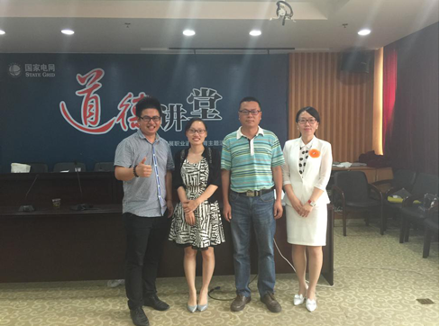 湘潭紅海培訓負責人項斌(左一)湘鄉(xiāng)電力局局領導(左二、三)講師(右一)