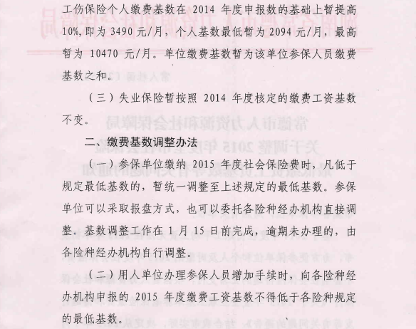 關(guān)于調(diào)整2015年度常德市社會保險最低繳費工資基數(shù)等有關(guān)問題的通知