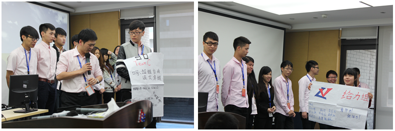 但是僅僅以順豐速運(yùn)公司基礎(chǔ)業(yè)務(wù)知識(shí)為培訓(xùn)內(nèi)容,是不能充分調(diào)動(dòng)同事工作的積極性,也不能形成一個(gè)團(tuán)結(jié)友愛(ài)的順豐項(xiàng)目團(tuán)隊(duì),更不能為廣大的順豐消費(fèi)者提供 優(yōu)質(zhì)的服務(wù)。對(duì)此,東莞科技的同事將本次受訓(xùn)者劃分為五大組,通過(guò)組與組之間的競(jìng)爭(zhēng),將培訓(xùn)生動(dòng)有趣化,提高同事投入程度和增強(qiáng)團(tuán)隊(duì)合作意識(shí)。