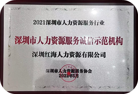 2022年5月18日,深圳市人力資源服務(wù)行業(yè)創(chuàng)新大會(huì)隆重舉行,深圳紅海公司榮獲2021年深圳市人力資源服務(wù)行業(yè)“深圳市人力資源服務(wù)誠信示范機(jī)構(gòu)”。