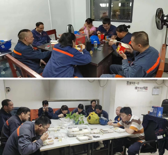 持續(xù)強降雨加上水庫泄洪,積水內(nèi)澇嚴(yán)重,有的項目部如利用挖掘機疏通下水管道,協(xié)助搶修;有的項目部則因各線各班人員到崗困難,但夜班員工仍然選擇留崗堅守,我們的管理人員則身先士卒,第一時間運送物資慰問,并親自接送員工進出,以確保安全。