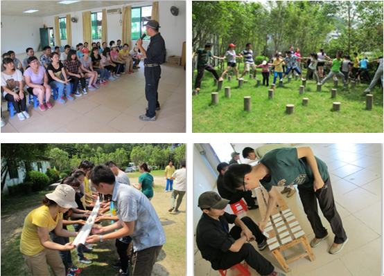 本次培訓(xùn)第一天主要以課程傳授形式為主,請(qǐng)來(lái)劉靖老師為宏潔單位講授課程。當(dāng)天課程氣氛活躍,也充滿感動(dòng),其中不乏課間大家合唱《感恩的心》。第二天主要以室外拓展活動(dòng)為主,安排了搶灘、梅花樁、翻撲克牌、乒乓球接力、跨越勝利墻,共5個(gè)拓展游戲。拓展活動(dòng)中,勝利的團(tuán)隊(duì)通過(guò)相互溝通、協(xié)助成功的完成每項(xiàng)項(xiàng)目,充分體現(xiàn)了團(tuán)隊(duì)的團(tuán)結(jié)合作力量,而失敗的團(tuán)隊(duì)面臨教練的懲罰,體現(xiàn)出團(tuán)隊(duì)部分成員犯錯(cuò)導(dǎo)致失敗需要整個(gè)團(tuán)隊(duì)承擔(dān)錯(cuò)誤的團(tuán)隊(duì)共榮辱宏觀精神。這種意義引申到日常的工作當(dāng)中,大家都紛紛贊同并感悟至深。