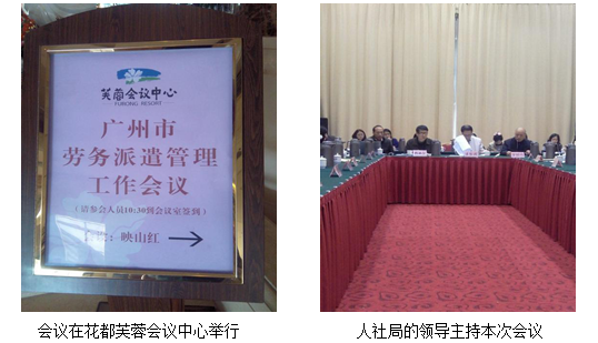 12月18至19日,2014年廣州市勞務(wù)派遣管理工作會(huì)議在花都區(qū)芙蓉會(huì)議中心舉行。出席本次會(huì)議的有:市人社局陳建龍副局長(zhǎng)、人社局勞動(dòng)關(guān)系處吳林濤處長(zhǎng)、楊秋元副處長(zhǎng)、市勞監(jiān)支隊(duì)彭敘榮隊(duì)長(zhǎng)、各區(qū)縣人社局的相關(guān)負(fù)責(zé)人及本市獲得許可或備案的30家勞務(wù)派遣企業(yè),紅?;ǘ挤止緦幇⒚房偨?jīng)理與助理經(jīng)理林川參加了本次會(huì)議。