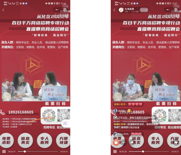 由廣州市從化區(qū)人力資源和社會保障局主辦,廣州市從化區(qū)勞動就業(yè)服務(wù)管理中心承辦,廣州紅海人力資源集團(tuán)股份有限公司從化分公司協(xié)辦,于2022年5月27日在廣州市從化區(qū)人力資源和社會保障局舉辦廣州市從化區(qū)2022年“百日千萬網(wǎng)絡(luò)招聘專項行動”直播帶崗網(wǎng)絡(luò)招聘會,為勞動者和用人單位提供優(yōu)質(zhì)高效服務(wù),為廣大求職者“足不出戶”,實現(xiàn)“碼上就業(yè)”。