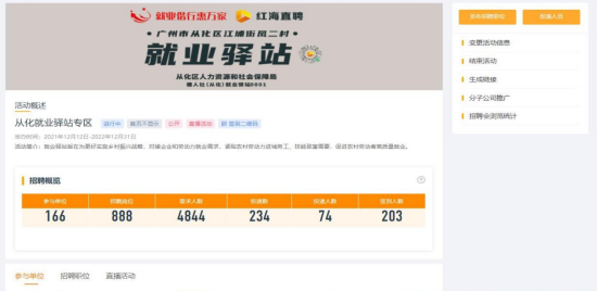 此外,招聘會還通過紅海直聘平臺線上同步直播,據平臺統計,從化就業(yè)驛站招聘專區(qū)累計提供了166家企業(yè)招聘信息,涵蓋888個招聘崗位,需求人數累計達到4844人。