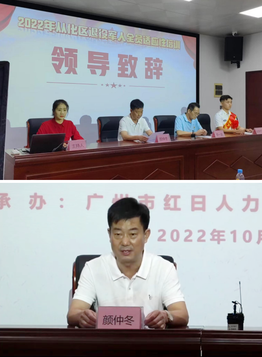 為進(jìn)一步促進(jìn)從化區(qū)退役軍人了解當(dāng)前就業(yè)形勢(shì),盡快適應(yīng)地方發(fā)展,盡早融入地方工作和生活,由廣州市從化區(qū)退役軍人事務(wù)局主辦、廣州市從化區(qū)人力資源和社會(huì)保障局協(xié)辦、廣州市紅日人力資源職業(yè)培訓(xùn)學(xué)校承辦的2022年從化區(qū)退役軍人全員適應(yīng)性培訓(xùn)于2022年10月28日上午在從化區(qū)退役軍人事務(wù)局以線上直播的形式進(jìn)行了開班典禮,從化區(qū)退役軍人事務(wù)局黨組書記、局長(zhǎng)顏仲冬同志、從化區(qū)人力資源和社會(huì)保障局就業(yè)中心副主任李一美同志、優(yōu)秀士兵代表劉夢(mèng)湛同志以及相關(guān)業(yè)務(wù)科室人員參加了開班典禮,200多名退役軍人進(jìn)行了線上觀看。