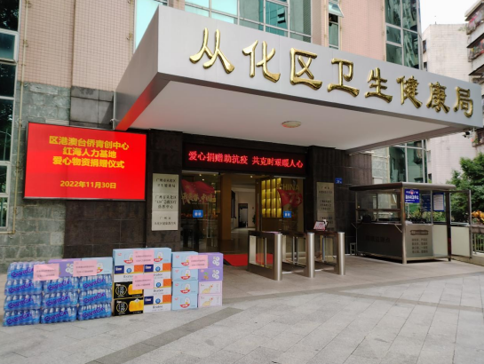 當(dāng)前,廣州市正面臨著三年以來最復(fù)雜、最嚴(yán)峻的疫情考驗,疫情防控處在最吃勁也是最關(guān)鍵的時期。2022年11月30日上午,在區(qū)港澳臺僑青創(chuàng)中心紅海人力基地領(lǐng)導(dǎo)寧總、楊副總的帶領(lǐng)下,向從化區(qū)衛(wèi)生健康局捐贈了30箱景田礦泉水、30箱面包等。