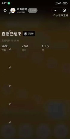 揭陽紅海在自有招聘群和朋友圈轉(zhuǎn)發(fā)直播預熱,還與深圳、河源、梅州等紅海集團分子公司進行聯(lián)合轉(zhuǎn)發(fā),揭陽人保也在員工朋友圈進行相對應的預熱。在5月19日正式直播中,在雙方同心協(xié)力下,直播時間為1小時18分,共計引流近3000人次進入直播間進行觀看直播,點贊數(shù)共計1.1W+,評論2000+次,取得了階段性的成績。預熱期間更是吸引到1名投??蛻艉投嗝藛T的崗位咨詢。
