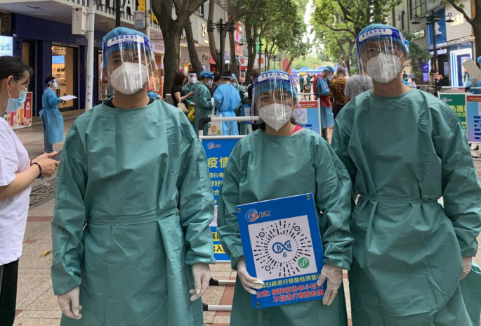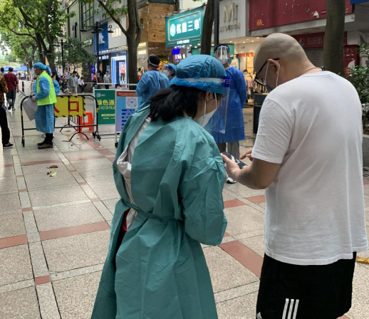大家熱情飽滿、積極主動,細(xì)致耐心地與社區(qū)工作人員、醫(yī)護(hù)人員一起引導(dǎo)社區(qū)居民有序開展核酸檢測采樣工作。維持秩序、引導(dǎo)居民、解釋政策、錄入信息……有條不紊地開展各項(xiàng)服務(wù)。
