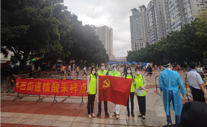 廣大志愿者、志愿服務(wù)組織積極響應(yīng)發(fā)出的倡議,廣東紅海人力資源有限公司惠州分公司(以下統(tǒng)稱為"惠州紅海")黨支部也迅速成立了一支【戰(zhàn)“疫”有我】小分隊(duì),投入到志愿者的行列。在街道黨工委防控工作領(lǐng)導(dǎo)小組工作人員的統(tǒng)籌下,惠州紅海【戰(zhàn)"疫"有我】小分隊(duì)被安排至市區(qū)濱江公園南廣場和惠州步行街進(jìn)行核酸檢測現(xiàn)場協(xié)助工作。