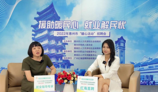 本次活動以長期失業(yè)、困難家庭畢業(yè)生、殘疾人等困難人員為重點服務(wù)對象,以全力幫扶困難人員實現(xiàn)就業(yè)為目標。作為活動重要內(nèi)容之一的“援助暖民心 就業(yè)解民憂”暨惠州市專場線上招聘會在紅海直聘平臺同步直播進行。