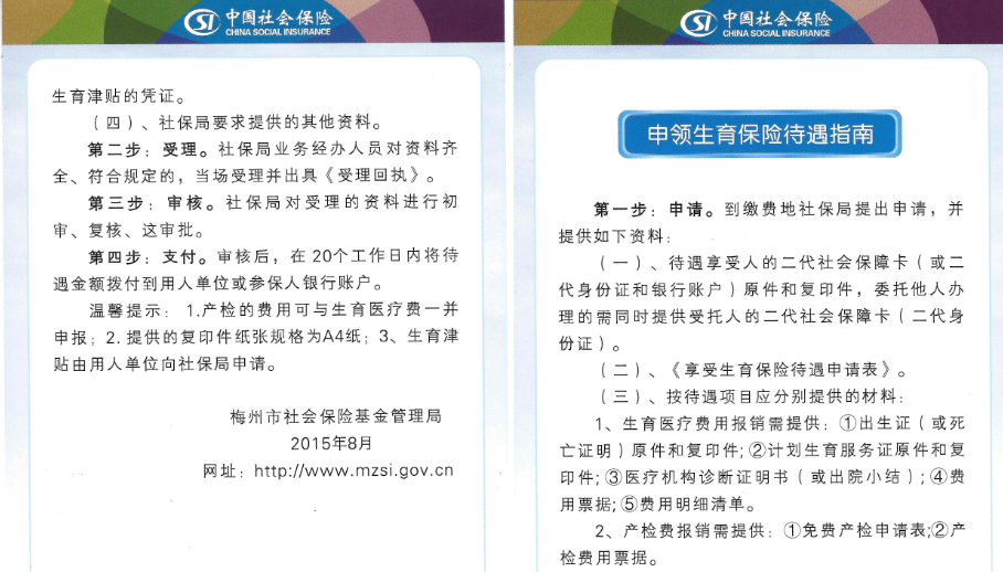 1.現(xiàn)梅州市職工生育津貼按《廣東省職工生育保險(xiǎn)規(guī)定》執(zhí)行,執(zhí)行日期從2015年1月1日開(kāi)始,在費(fèi)用發(fā)生的一年內(nèi)由用人單位向參保地社保局申請(qǐng)生育津貼;