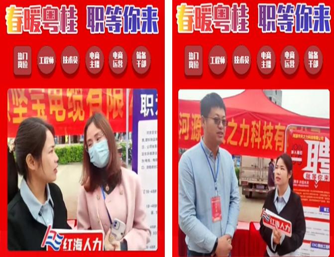 本次由河源江東新區(qū)組織人事和社會(huì)保障局、貴港市港北區(qū)人力資源和社會(huì)保障局主辦,廣東紅海人力資源有限公司承辦,廣東紅海人力資源有限公司河源分公司、貴港紅海人力資源有限公司協(xié)辦的“春暖粵桂,職等你來(lái)”現(xiàn)場(chǎng)招聘會(huì)于4月8日至4月9日?qǐng)A滿結(jié)束!