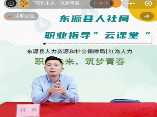 為貫徹落實黨中央、國務院助力畢業(yè)生高質量就業(yè)和省委、省政府關于促進高校畢業(yè)生就業(yè)創(chuàng)業(yè)的決策部署。7月18日上午,東源縣人力資源和社會保障局面向全體應屆畢業(yè)生、往屆未就業(yè)畢業(yè)生和其他有就業(yè)需求的勞動者開展“職引未來,筑夢青春”2023年職業(yè)指導直播活動。