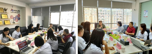 廣東紅海人力資源有限公司肇慶分公司經(jīng)理梁少萍組織各部門主管及項目負(fù)責(zé)人舉行了座談會。會上,梁總再一次對熊堅老師一行領(lǐng)導(dǎo)的到來表示熱烈歡迎,隨后各項目部、肇慶鴻日培訓(xùn)學(xué)校分別對經(jīng)營情況、業(yè)務(wù)開展的難點做簡要匯報。