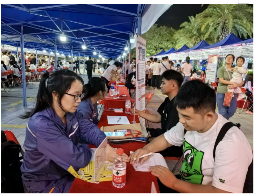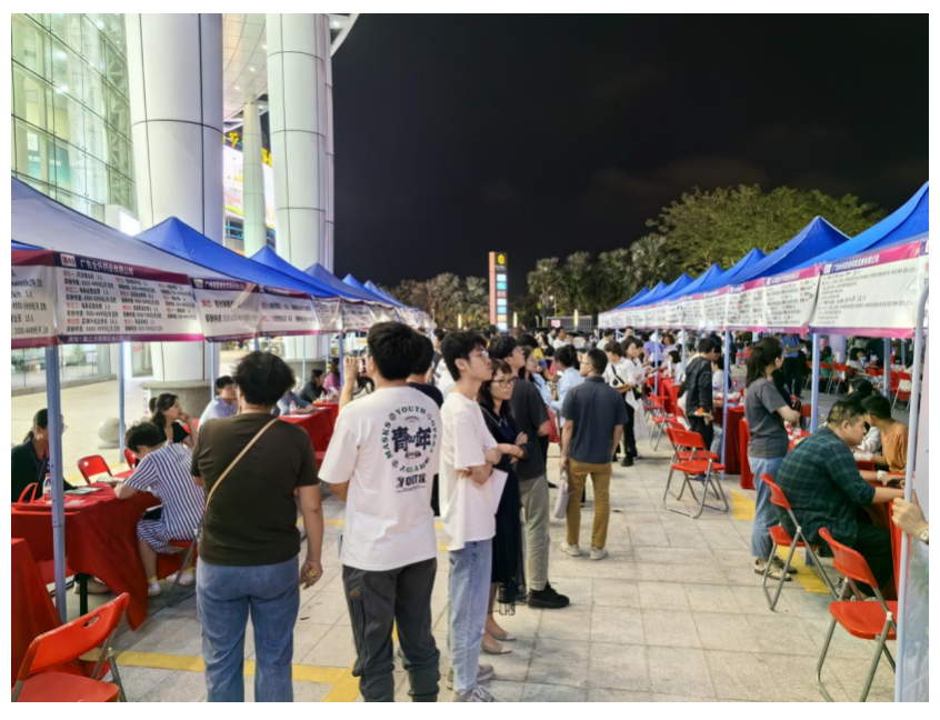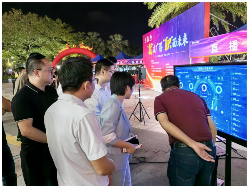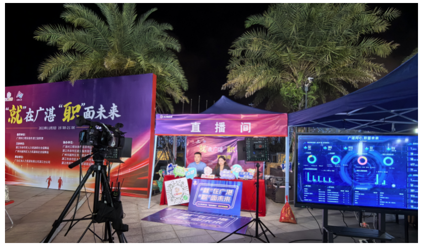 11月3日晚,2023年赤坎區(qū)“金秋招聘月”夜市專場招聘會(huì)在赤坎區(qū)金沙灣廣場舉行,采取線上直播帶崗,結(jié)合線下企業(yè)直招的形式吸引了大量求職者參加。