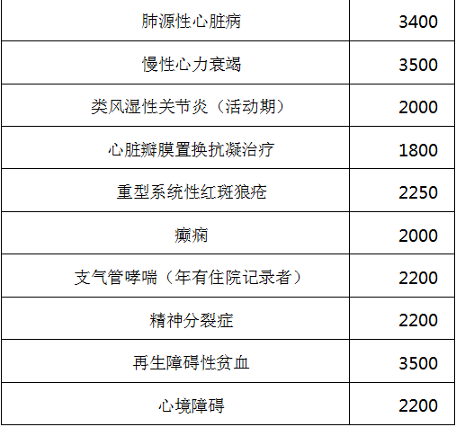 (二)參保人員審批后確定的病種年度內(nèi)按統(tǒng)籌基金最高支付限額及病種支付標(biāo)準(zhǔn)享受長期門診待遇,未審批的病種發(fā)生地費(fèi)用不予支付。病種年度內(nèi)統(tǒng)籌基金最高支付限額見下表: