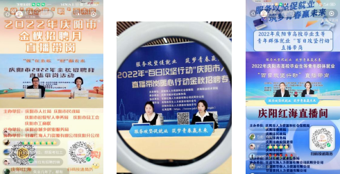 這場直播是在慶陽當(dāng)?shù)匾咔槎帱c爆發(fā),線下招聘活動難以開展的情況下,慶陽紅海承接的“慶陽市2022年百日攻堅行動直播帶崗服務(wù)項目”的落地活動之一。今年以來,慶陽紅海按照集團戰(zhàn)略,以紅海直聘直播帶崗活動為牽引,重點經(jīng)營政府、高校、農(nóng)村勞務(wù)合作社,以集群營銷的方式較好的盤活了當(dāng)?shù)厝肆Y源市場。自2022年7月份以來,慶陽紅海與慶陽市人社局、市就業(yè)局、市退役軍人事務(wù)局、團市委、市總工會、西峰區(qū)人社局、區(qū)就業(yè)局、區(qū)退役軍人事務(wù)局、合水縣人社局、就業(yè)局、合水縣教科局等多個政府部門合作開展直播帶崗及招聘外包專場活動,取得了較好的社會反響和經(jīng)濟效益。