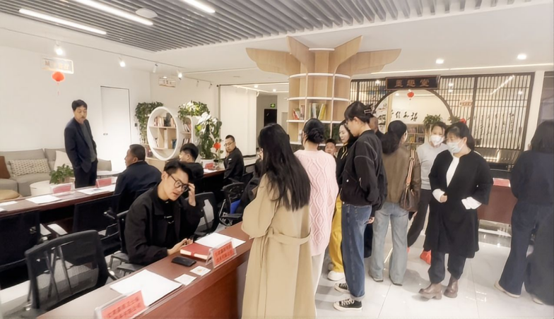 上午9時許,北地東路社區(qū)一樓內(nèi)招聘現(xiàn)場已排起長隊,求職咨詢?nèi)藛T絡(luò)繹不絕。各個招聘展位的企業(yè)代表熱情向咨詢求職者詳細(xì)介紹崗位需求,求職者手持簡歷穿梭咨詢,社區(qū)志愿者引導(dǎo)秩序并提供政策解答。