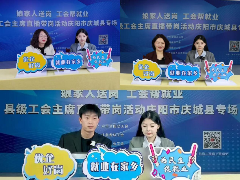 2025年4月17日星期四,由中華全國總工會指導(dǎo)、甘肅省總工會主辦、慶城縣總工會承辦,并由甘肅紅海人力資源有限公司慶陽分公司協(xié)辦的“娘家人送崗 工會幫就業(yè)”縣級工會主席直播帶崗活動成功舉辦。此次活動通過“職工之家APP”進(jìn)行了線上直播,吸引了眾多求職者的關(guān)注和參與。