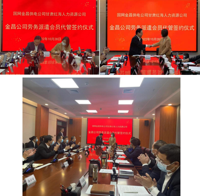 2022年10月28日上午,在國(guó)網(wǎng)金昌供電公司十一樓會(huì)議室進(jìn)行了甘肅紅海人力資源有限公司金昌分公司工會(huì)委員會(huì)勞務(wù)派遣人員代管簽約儀式。