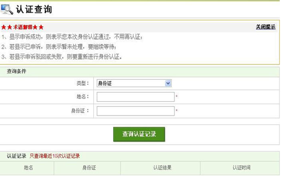 在頁(yè)面相關(guān)處按類型選擇項(xiàng),輸入姓名、身份證號(hào)碼或個(gè)人編號(hào)后,點(diǎn)擊“查詢認(rèn)證記錄”可查看到認(rèn)證結(jié)果。