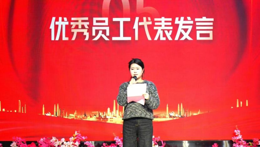 獲獎員工們手捧獎杯與證書,在聚光燈下分享著各自的成長故事與工作感悟。優(yōu)秀員工代表石露露說到“感謝張掖紅海給予的廣闊平臺,讓自己得以施展才華;感恩領導的悉心指導與同事的熱心幫助,陪伴自己一路成長”。這些真摯話語如涓涓細流,流淌進每一位員工心間,化作奮進新力量。