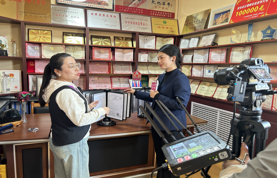活動期間,直播探訪團隊深入多家民營企業(yè),其中不乏極具民族特色的企業(yè)。在裕固族非物質(zhì)文化遺產(chǎn)保護名錄相關(guān)企業(yè) —— 肅南裕固族富達民族服飾工藝有限責(zé)任公司,探訪團隊實地參觀了民族服飾展示區(qū),了解裕固族服飾的精湛工藝與文化傳承。企業(yè)負責(zé)人介紹,通過創(chuàng)新融合民族文化與現(xiàn)代設(shè)計,不僅讓傳統(tǒng)技藝煥發(fā)新生,更創(chuàng)造了多樣化的就業(yè)崗位,從手工藝制作到市場營銷,吸引了不同技能背景的求職者。