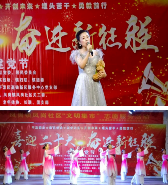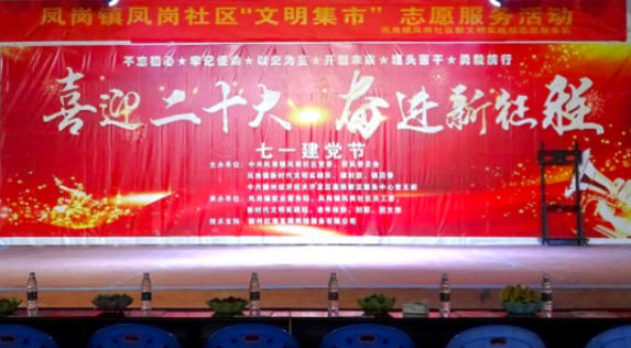為慶祝建黨一百零一周年,由中共鳳崗鎮(zhèn)社區(qū)黨委、居民委員會(huì)、鳳崗鎮(zhèn)新時(shí)代文明實(shí)踐所、鎮(zhèn)婦聯(lián)、鎮(zhèn)團(tuán)委、中共贛州經(jīng)濟(jì)技術(shù)開(kāi)發(fā)區(qū)高鐵新區(qū)服務(wù)中心黨支部主辦;由鳳崗鎮(zhèn)就業(yè)服務(wù)站、鳳崗鎮(zhèn)鳳崗社區(qū)關(guān)工委、新時(shí)代文明實(shí)踐站、老年體協(xié)、婦聯(lián)、團(tuán)支部承辦;由贛州紅海直聘網(wǎng)絡(luò)服務(wù)有限公司負(fù)責(zé)技術(shù)支持的建黨101周年文藝匯演節(jié)目于2022年7月1日晚拉開(kāi)序幕。