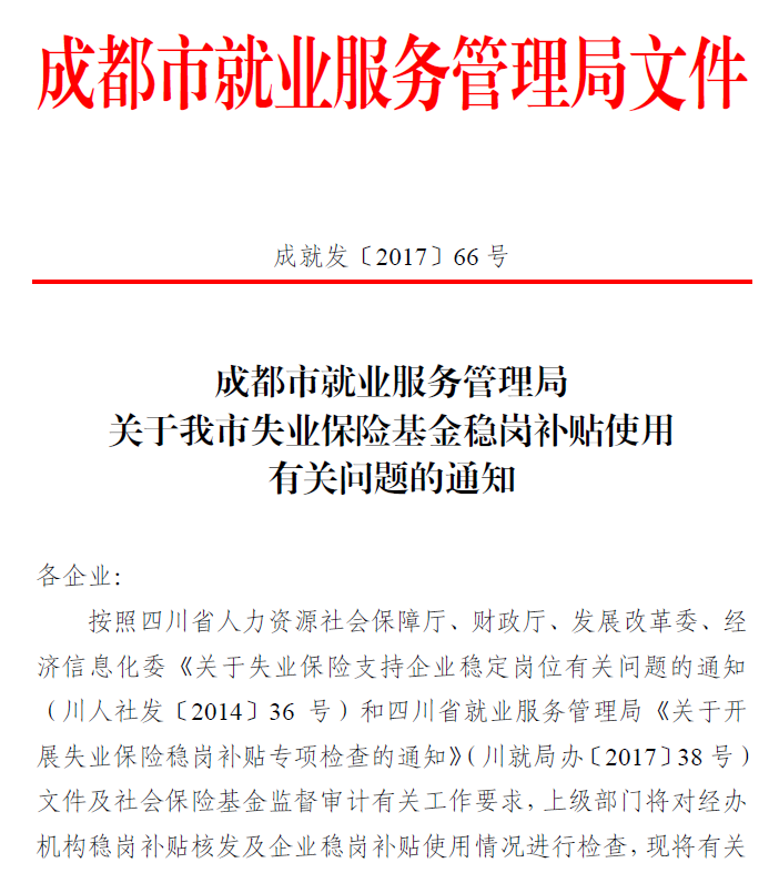 成就發(fā)〔2017〕66 號(hào):關(guān)于我市失業(yè)保險(xiǎn)基金穩(wěn)崗補(bǔ)貼使用有關(guān)問題的通知