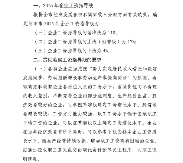 關(guān)于德陽市2015年企業(yè)工資指導(dǎo)線的通知