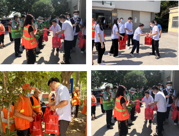 鄭州炎炎夏日,驕陽似火,氣溫持續(xù)攀升,為確保一線外包員工全身心投入到工作中,鄭州鴻易為一線環(huán)衛(wèi)、垃圾清運、綠化維修員工購置了水杯、綠豆、毛巾、香皂等防暑降溫用品。7月28日,時勤莉董事長與公共資源經(jīng)營項目部同事共同前往鄭州市二七區(qū)馬寨工業(yè)園區(qū)市政所、侯寨市政所、櫻桃溝市政所,為奮戰(zhàn)在一線的環(huán)衛(wèi)員工送去了關(guān)懷和清涼。