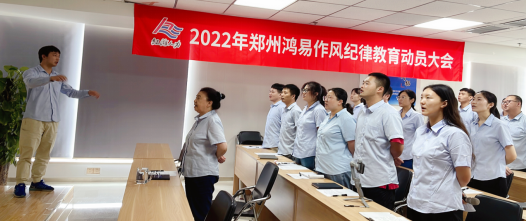 鄭州鴻易作風紀律教育動員大會在鄭州鴻易公司培訓室召開,洛陽分公司、信陽分公司采用騰訊會議線上參會。會議由總監(jiān)朱俊英主持,在退役軍人宋鵬的指揮下,以全體合唱革命傳統(tǒng)歌曲《三大紀律八項注意》中拉開序幕。