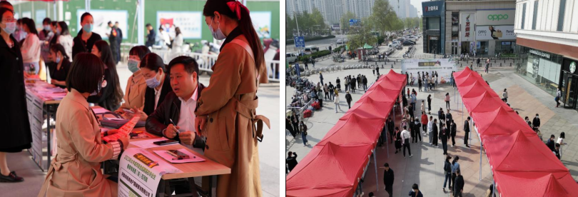 本次招聘會共有百余家企業(yè)參與,為求職者提供崗位近千個,為有就業(yè)意愿的求職者及有用工需求的企業(yè)單位提供“零距離”就業(yè)服務,招聘會現(xiàn)場采取“線上+線下”同步進行的模式。線下在二七萬達2號門廣場舉辦,線上通過“紅海直聘”平臺開展直播帶崗。