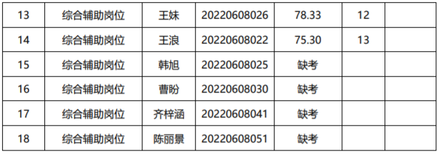 一、??诟酆jP(guān)綜合輔助崗位協(xié)管員面試成績(jī)表