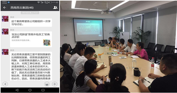 前不久,針對(duì)網(wǎng)上炒得沸沸揚(yáng)揚(yáng)的寶潔公司辭退勞務(wù)外包員工案,老板在微信群中發(fā)表了自己獨(dú)到的見(jiàn)解,并指示:“希望各公司組織一次學(xué)習(xí)與討論”。為貫徹落實(shí)老板指示精神,增強(qiáng)重慶紅海員工的綜合業(yè)務(wù)水平和防控風(fēng)險(xiǎn)意識(shí),7月31日上午,重慶紅海組織全體員工,專題學(xué)習(xí)討論了該案例。