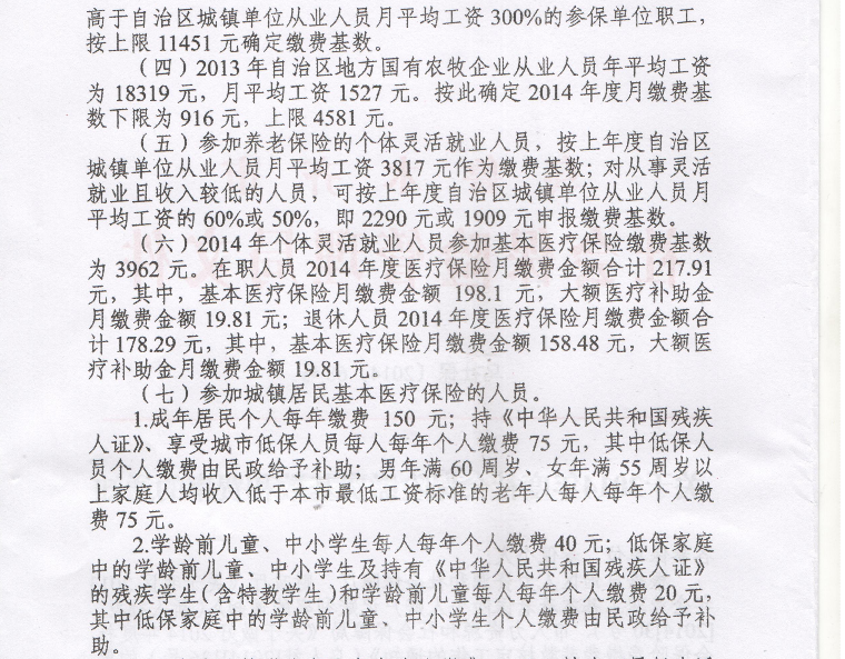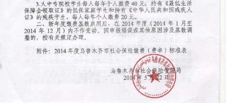 烏魯木齊市關于2014年度社會保險繳費基數(shù)和費率的通知