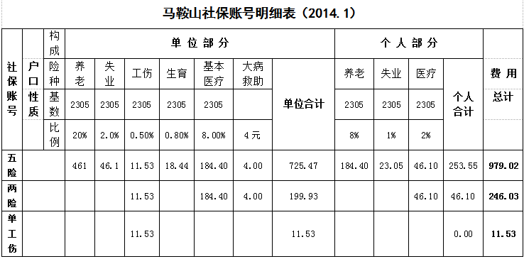 馬鞍山市2014年1-7月社保繳費(fèi)基數(shù)及比例