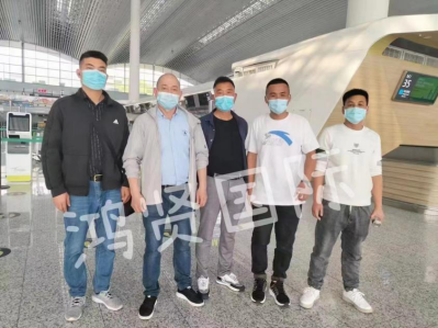 這是員工上飛機(jī)前防疫準(zhǔn)備以及合影 地點(diǎn):孟加拉國(guó)